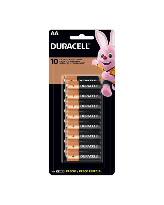 Caracteristicas:A energia das pilhas AA da Duracell dura até 10 vezes mais*. Esses produtos multiuso são adequados para energizar dispositivos do dia a dia. As pilhas AA da Duracell lhe dão a liberdade de usar seus aparelhos ao oferecerem um produto em que você pode confiar. A melhor ocasião para usá-la é quando você precisa de energia confiável e de longa duração em seus dispositivos do dia a dia, como brinquedos motorizados, lanternas, consoles de videogame portáteis, controles remotos, tocadores de CD, etc. A tecnologia Duralock mantém novas as pilhas Duracell inutilizadas, que permanecem carregadas por até 10 anos em condições de armazenamento ambientes.- Tipo: Alcalina AA- Com 16 unidades*vs. pilhas comuns de zinco-carbono. Os resultados podem variar por dispositivo.* As especificações podem ser alteradas sem aviso prévio ** Imagem meramente ilustrativa.