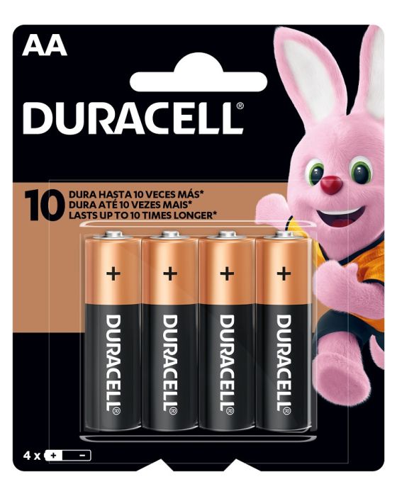Caracteristicas:A energia das pilhas AA da Duracell dura até 10 vezes mais*. Esses produtos multiuso são adequados para energizar dispositivos do dia a dia. As pilhas AA da Duracell lhe dão a liberdade de usar seus aparelhos ao oferecerem um produto em que você pode confiar. A melhor ocasião para usá-la é quando você precisa de energia confiável e de longa duração em seus dispositivos do dia a dia, como brinquedos motorizados, lanternas, consoles de videogame portáteis, controles remotos, tocadores de CD, etc. A tecnologia Duralock mantém novas as pilhas Duracell inutilizadas, que permanecem carregadas por até 10 anos em condições de armazenamento ambientes.- Tipo: Alcalina AA- Com 4 unidades*vs. pilhas comuns de zinco-carbono. Os resultados podem variar por dispositivo.* As especificações podem ser alteradas sem aviso prévio ** Imagem meramente ilustrativa.