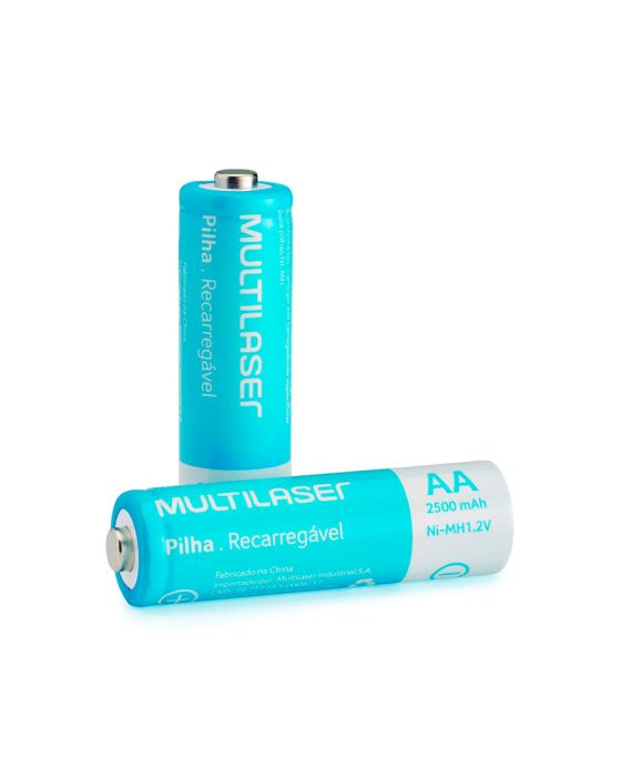 Características: - Aproximadamente 1.000 ciclos de recarga- Sem efeito de memória- Blister com 2 pilhas AA 2500mAh- Dimensões: 150 x 90 x 20mm- Composição: níquel, metal hidreto, alumínio e termoplásticos.* As especificações podem ser alteradas sem aviso prévio ** Imagem meramente ilustrativa