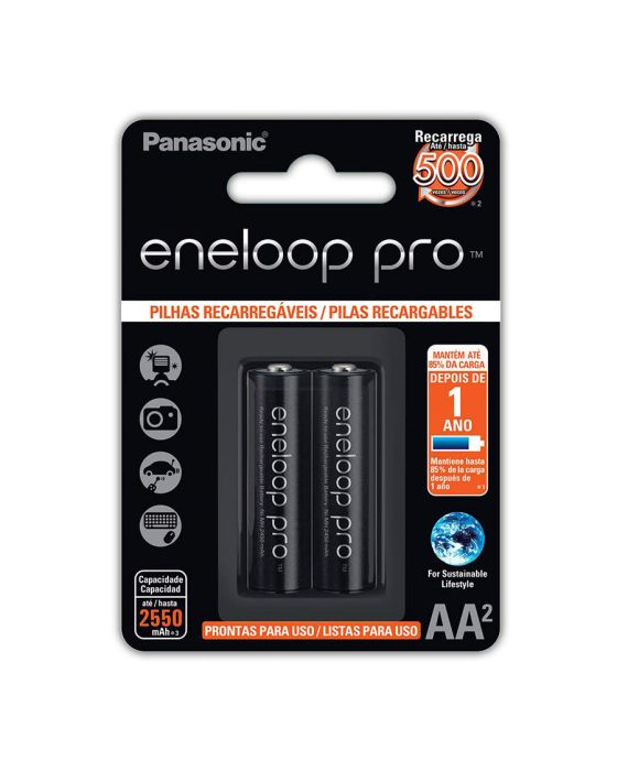 Pilha Recarregavel Aa Eneloop Pro Bk-3hcce/2bb 2550mah C/2 Un Panasonic