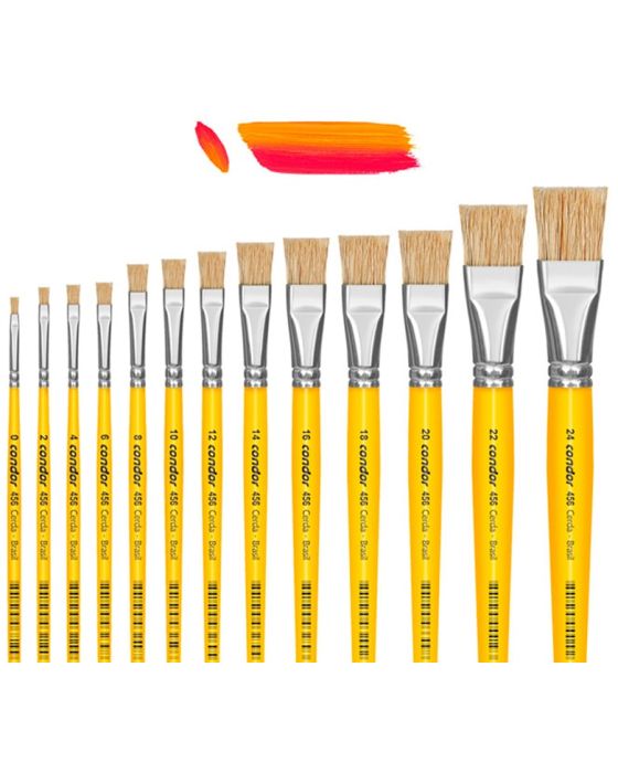 Caracteristicas:- Pêlo/Cerda: Cerdas brancas importada- Cabo longo de madeira amarelo - Formato chato- Virola de alumínio- Ideal para Escolar, Tecido e artesanatoDimensões- Pincel: 27 cm- Cerdas: 2 cm (comprimento). 18 mm (largura)* As especificações podem ser alteradas sem aviso prévio ** Imagem meramente ilustrativa