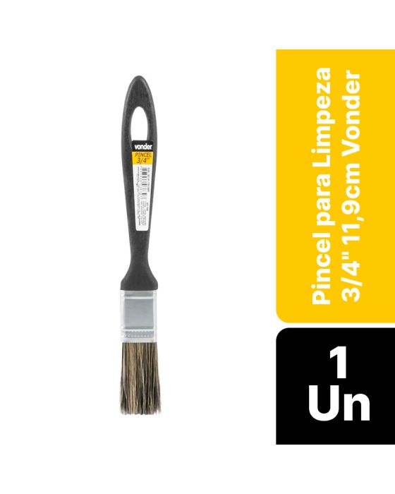 Características:O Pincel para Limpeza 3/74 Vonder, proporciona maior qualidade na aplicação e durável!Detalhes:- Marca: Vonder;- Modelo: VD 700;- Referência: 62.41.734.000;- Linha: Correntes de sinalização;- Cor: Preto;- Cor das cerdas: Gris;- Tamanho: 3/4cm;- Contém: 1 unidade do produto com 11,9cm de comprimento;- Econômico e proporciona excelente acabamento.Validade: Indeterminada.Indicação de Pintura: - Indicado para pinturas em geral com tintas látex e acrílicas. Utilizado também na limpeza de peças e máquinas.Onde usar:- Ideal para Escolar, Aquarela, Guache, tecidos e quadros, paredes, construções, madeiras e demais áreas.Composição: - Cerdas: Misto de cerdas sintéticas e cerdas de pelo natural de porco;- Cabo: Plástico.Medidas:- Dimensões da embalagem: 7,6 x 11,9cm (CxA);- Peso: 0,19g.Conteúdo da embalagem: 1 Pincel para Limpeza 3/4 11,9cm Vonder.Garantia do fornecedor: 90 dias contra defeitos de fabricação.* As especificações podem ser alteradas sem aviso prévio ** Imagem meramente ilustrativa.