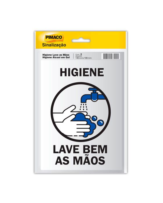 Placa Sinalizacao Adesiva 14 X 19cm - Higienize As Maos / Lave Bem As Maos Pimaco
