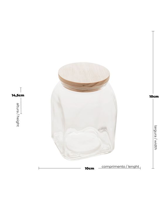 Características:O Porta Mantimento de Vidro com Tampa de Bambu de 1L da Lyor é uma escolha sofisticada e prática para armazenar mantimentos com estilo e eficiência.Design EleganteO design elegante do porta mantimento confere um toque refinado à sua cozinha, tornando-o uma peça versátil para diferentes estilos de decoração.Versatilidade de UsoAlém de mantimentos secos, o porta mantimento pode ser utilizado para armazenar outros itens, como doces, biscoitos, ou até mesmo objetos não alimentícios.Fácil de LimparO vidro facilita a limpeza, e a tampa de bambu pode ser removida para uma higienização completa.Detalhes:- Marca: Lyor;- Referência: 1915;- Linha: Porta Mantimentos;- Tipo: Armazenamento;- Cor da tampa: Bambu;- Cor do corpo: Incolor;- Capacidade: 1 Litro;- Contém: 1 unidade do produto;- Design simples e elegante;- Produto Versátil, podendo ser usado armazenamento de diversos tipos de produtos;- Fácil de limpar.Ideal para:- Ideal para Cozinha, Copas, Lavanderias, Dispensas, lanchonetes, restaurantes, panificadora e confeitaria, hotéis e demais estabelecimentos.Limpeza e cuidados:- Lavar com detergente neutro, esponja macia e secar imediatamente; - Não lavar em máquinas e não utilizar produtos químico.Recomendações:- Este produto não pode ir ao Micro-Ondas, Lava Louças, fornos, freezer e fogões.Composição: - Fabricado em Vidro.Medidas:- Dimensões do produto: 10 x 10 x 19,9cm (CxLxA);- Peso: 0,48kg.Conteúdo da embalagem: 1 Porta Mantimento de Vidro com Tampa de Bambu 1L Lyor.As especificações podem ser alteradas sem aviso prévio ** Imagem meramente ilustrativa.