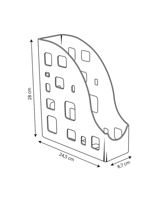 Caracteristicas:Um dos produtos mais funcionais e coringas para organização de ambientes da Dello, o porta revistas é multifuncional e vai além do que seu nome propõe.A aplicação desse produto versátil vai da imaginação e da necessidade de cada pessoa (e bagunça), então não há limites para seu uso.Detalhes:- Marca: Dello.- Modelo: 6023.P.- Linha: Porta Revistas.- Cor: Preto.- Contém: 1 unidade do produto.- Medidas: 24,5 x 8,7 x 28cm.- Peso. 0,420g.- Espessura: 3 micras.Ideal para:- Escritórios, Mesas de estudos, Quartos, Recepção de clínicas e escolas, e etc.Composição:- Porta Revistas injetado em poliestireno. * As especificações podem ser alteradas sem aviso prévio ** Imagem meramente ilustrativa