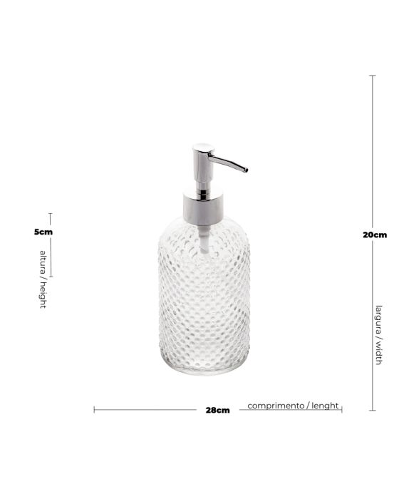 Características:Transforme o momento da higiene diária em uma experiência de luxo com o Porta Sabonete Líquido de Vidro da Lyor. Seu design sofisticado e capacidade de 380ml garantem que seu banheiro se torne um ambiente não apenas funcional, mas também elegante. Ideal para sabonetes líquidos, proporciona uma aplicação suave e fácil.Elegância TranslúcidaEste porta sabonete adiciona uma elegância translúcida ao ambiente. A variedade de tonalidade transformando um item comum em um destaque visual.Praticidade no UsoO sistema de dosagem facilita a aplicação do sabonete líquido, evitando desperdícios e controla a quantidade ideal para cada uso.Detalhes:- Marca: Lyor;- Referência: 5686;- Linha: Porta Sabonete Líquido;- Cor: Incolor (Estampas sortidas);- Capacidade: 380ml;- Contém: 1 unidade do produto;- Uso prático;- Design elegante e translúcida.Fabricado na China | Validade indeterminada.Ideal para:- Ideal para banheiros e lavabos.Limpeza e cuidados:- Lavar com detergente neutro, esponja macia e secar imediatamente. Não utilizar produtos químicos;- Não lavar em máquinas.Recomendações:- Este produto não pode ir ao Micro-Ondas, Lava Louças, fornos, freezer e fogões.Composição:- Fabricado em Vidro.Medidas:- Dimensões do produto: 8 x 7 x 19,5cm (CxLxA);- Peso: 0,26kg.Conteúdo da embalagem: 1 Porta Sabonete Líquido de Vidro Sortido 380ml Lyor.Estampas sortidas, será enviado de acordo com a disponibilidade do estoque. Não é possível escolher uma estampa específica.As especificações podem ser alteradas sem aviso prévio ** Imagem meramente ilustrativa.