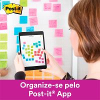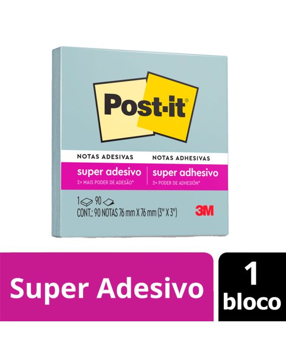 Características:As notas adesivas Post-it® tamanho 7,6 cm x 7,6cm são ideais para anotações e recados. Ideal para fazer anotações e lembretes, possui diversas cores o que facilita sua organização. Possui um adesivo 2x mais forte do que o bloco Post-it® originalDetalhes:- Marca: Post-it®;- Fabricante: 3M;- Referência: HB004391965;- Linha: Blocos de notas;- Cor: Azul;- Quantidade de folhas: 90 folhas;- Quantidade de blocos: 1 bloco;- Contém: 1 embalagem com 1 bloco de 90 folhas cada;- Medidas: 76 x 76mm (7,6 x 7,6cm);- Ideal para anotar recados e se organizar;- Possuindo 2x mais adesão do que o bloco Post-it® original;- Ideal para colar em superfícies verticais;- Não deixa resíduos do adesivo;- Folhas reposicionáveis;- Reciclável;- Produto Certificado: SFI (Chain of Custody Certified) o que garante que vem de florestas bem administradas, onde as árvores são replantadas.Aplicações sugeridas:- Ideal para fazer anotações e lembretes, possui diversas cores o que facilita sua organização. Possui um adesivo 2x mais forte do que o bloco Post-it® original.Composição:- Papel: Papel com gramatura de 90g/m²;- Adesivo: Adesivo de base vegetal.AVISO!- O adesivo pode deixar marcas em algumas superfícies ou remover tinta. Teste antes de usar!* As especificações podem ser alteradas sem aviso prévio ** Imagem meramente ilustrativa.