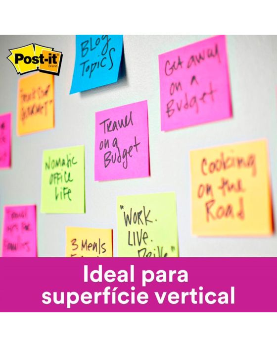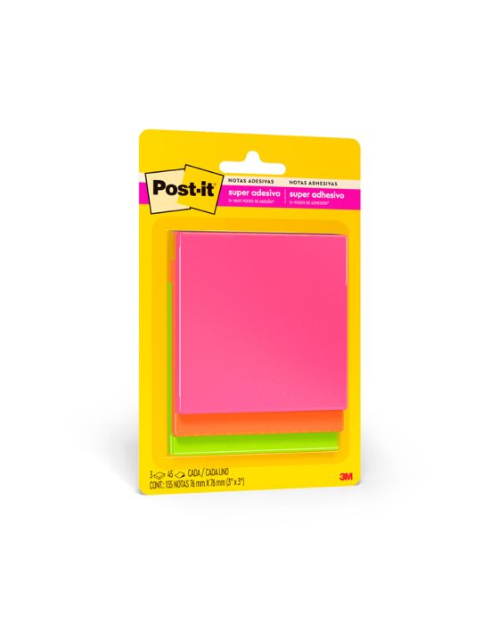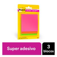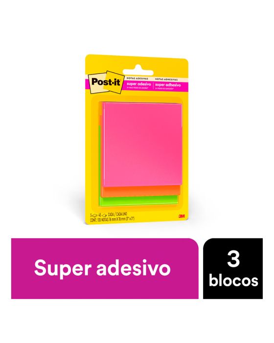 Caracteristicas:As notas adesivas Post-it® tamanho 7,6 cm x 7,6 cm são ideais para anotações e recados.Suas folhas são reposicionáveis, pois possuem adesivo de qualidade 3M que permite que essas sejam retiradas e recolocadas sem danificar papéis ou outras superfícies. Não deixa resíduos do adesivo.Todo papel utilizado nas notas Post-it® é certificado pelo SFI (Chain of Custody Certified), o que garante que vem de florestas bem administradas, onde as árvores são replantadas.Detalhes:- Marca: Post-it®;- Fabricante: 3M;- Referência: HB004528707;- Linha: Notas adesivas;- Tipo: Cascata;- Cor: Rosa, Laranja e Verde;- Quantidade de folhas: 45 folhas por bloco (135 folhas no total);- Quantidade de blocos: 3 blocos;- Contém: 1 embalagem com 3 blocos de 45 folhas;- Medidas: 76 x 76mm (7,6 x 7,6cm);- Contam com 2x maior poder de adesão;- Ideal para anotar recados e se organizar;- Reciclável.Aplicações sugeridas:- Ideal para fazer anotações e lembretes, possui diversas cores o que facilita sua organização. Possui um adesivo 2x mais forte do que o bloco Post-it®original.Composição:- Papel com adesivo com base vegetal reposicionável.Aplicativo Post-it:- Reúna suas Notas Post-it®: Capture até 200 Notas Post-it® de uma só vez utilizando a câmera do seu dispositivo. Use seu tamanho de Notas Post-it® preferido;- Crie Quadros: Junte e combine ideias de várias sessões de brainstorms;- Adicione e Edite Notas Digitais: Adicione novas notas ao seu quadro e transforme notas escritas à mão em um texto editável;- Organize do seu jeito: Agrupe suas ideias por temas ou organize-as em uma grade;- Compartilhe facilmente com seus Apps favoritos: Use no PowerPoint®, Excel®, PDF, Dropbox, Trello®, Miro e iCloud®;- Trabalhe em todos os seus dispositivos: O App Post-it® está disponível para IOS, Android e Chromebook.AVISO!- O adesivo pode deixar marcas em algumas superfícies ou remover tinta. Teste antes de usar!Conteúdo da embalagem: 1 Post-it Cascata 3 Blocos 76 X 76 Mm 3m.* As especificações podem ser alteradas sem aviso prévio ** Imagem meramente ilustrativa.