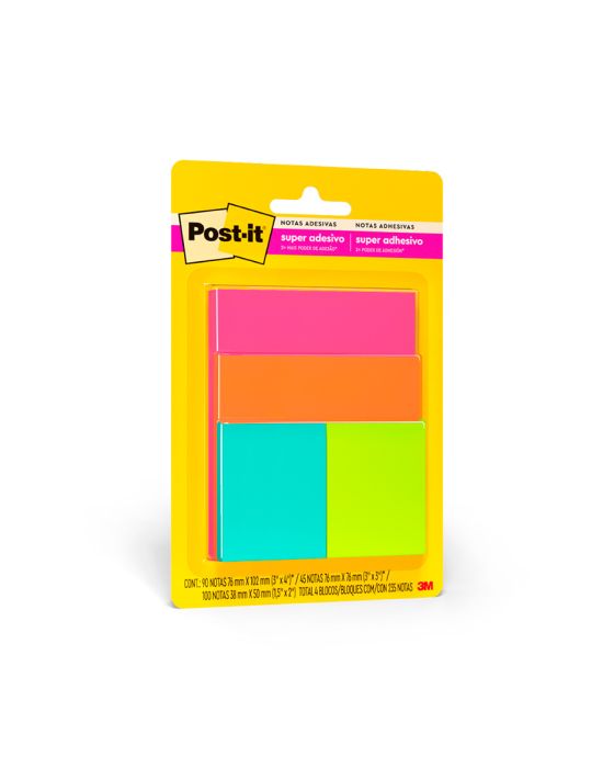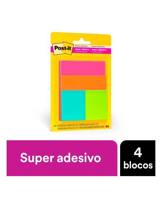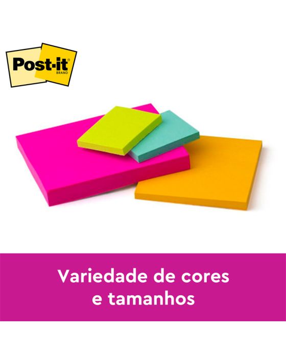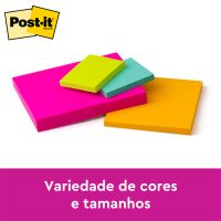 Caracteristicas:As Notas adesivas Post-it® tamanho 76 mm x 76 mm são ideais para anotações e recados. Utilize três cores diferentes para cada lembrete ou tarefa.Suas folhas são reposicionáveis, pois possuem adesivo de qualidade 3M que permite que essas sejam retiradas e recolocadas sem danificar papéis ou outras superfícies. Não deixa resíduos do adesivo.Todo papel utilizado nas notas Post-it® é certificado pelo SFI (Chain of Custody Certified), o que garante que vem de florestas bem administradas, onde as árvores são replantadas.Detalhes:- Marca: Post-it®;- Fabricante: 3M;- Referência: HB004528715;- Linha: Notas adesivas;- Tipo: Cascata;- Cor: Rosa, Laranja e Verde;- Quantidade de folhas: 245 folhas total;- Quantidade de blocos: 4 blocos;- Contém: 1 embalagem com 4 blocos mistos com 245 folhas;- Contam com 2x maior poder de adesão;- Ideal para anotar recados e se organizar;- Reciclável.Aplicações sugeridas:- Ideal para fazer anotações e lembretes, com diversas cores que facilitam sua organização.Composição:- Papel com adesivo com base vegetal reposicionável.Medidas:- Rosa: 102 mm x 76 mm (100 folhas);- Laranja: 76 mm x 76 mm (45 folhas);- Azul: 38 mm x 50 mm (50 folhas);- Verde: 38 mm x 50 mm (50 folhas).Aplicativo Post-it:- Reúna suas Notas Post-it®: Capture até 200 Notas Post-it® de uma só vez utilizando a câmera do seu dispositivo. Use seu tamanho de Notas Post-it® preferido;- Crie Quadros: Junte e combine ideias de várias sessões de brainstorms;- Adicione e Edite Notas Digitais: Adicione novas notas ao seu quadro e transforme notas escritas à mão em um texto editável;- Organize do seu jeito: Agrupe suas ideias por temas ou organize-as em uma grade;- Compartilhe facilmente com seus Apps favoritos: Use no PowerPoint®, Excel®, PDF, Dropbox, Trello®, Miro e iCloud®;- Trabalhe em todos os seus dispositivos: O App Post-it® está disponível para IOS, Android e Chromebook.AVISO!- O adesivo pode deixar marcas em algumas superfícies ou remover tinta. Teste antes de usar!Conteúdo da embalagem: 1 Post-it Cascata Misto 4 Blocos 235 Folhas 3m.* As especificações podem ser alteradas sem aviso prévio ** Imagem meramente ilustrativa.