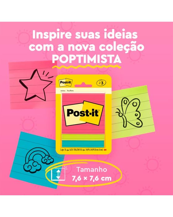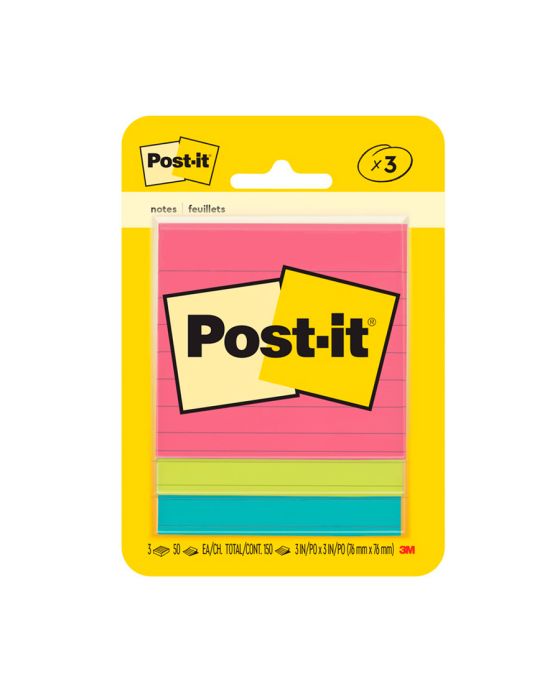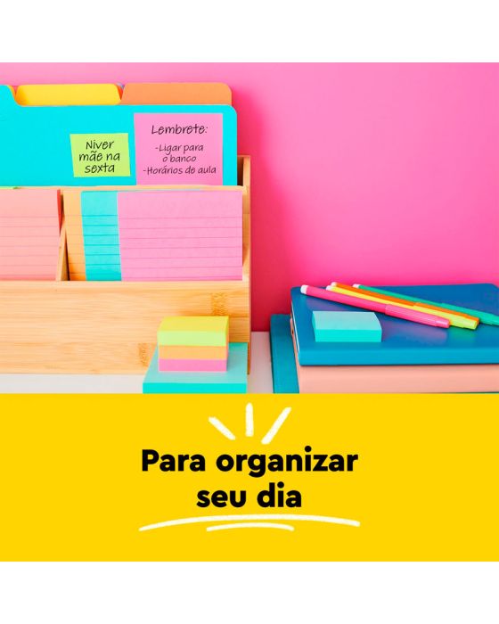 Post-it Cascata Verde/azul/rosa Pautado 150 Fls 76 X 76mm 3m