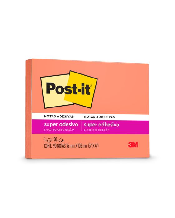 Caracteristicas:As Notas adesivas Post-it® tamanho 76 mm x 102 mm são ideais para anotar qualquer coisa que você precisar. Bloco de notas super adesivas ideal para colar em superfícies verticais.Os blocos adesivos são indispensáveis no seu dia-a-dia, garantindo maior organizaçãoDetalhes:- Marca: Post-it®;- Fabricante: 3M;- Referência: HB004392153;- Linha: Notas adesivas;- Cor: Damasco;- Quantidade de folhas: 90 folhas;- Quantidade de blocos: 1 bloco;- Contém: 1 embalagem com 1 bloco de 90 folhas;- Medidas: 76 x 102mm (7,6 x 10,2cm);- Possui um adesivo 2x mais forte do que o bloco Post-it®original;- Ideal para anotar recados e se organizar;- Gruda e desgruda: É reposicionavel;- Adesivo ideal para o uso em papel;- Reciclável;- Adesivo de base vegetal.Aplicações sugeridas:- Ótimos para deixar seus recados e lembretes sempre ao seu alcance.Composição:- Papel produzido a base de 30% de papel reciclado.AVISO!- O adesivo pode deixar marcas em algumas superfícies ou remover tinta. Teste antes de usar!Conteúdo da embalagem: 1 Post-it Damasco Reciclado 76 X 102 Mm 90 Folhas 3m.* As especificações podem ser alteradas sem aviso prévio ** Imagem meramente ilustrativa.