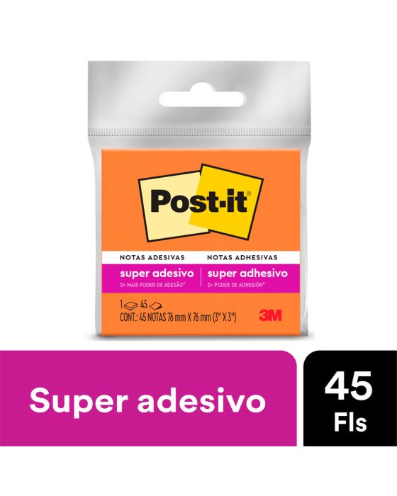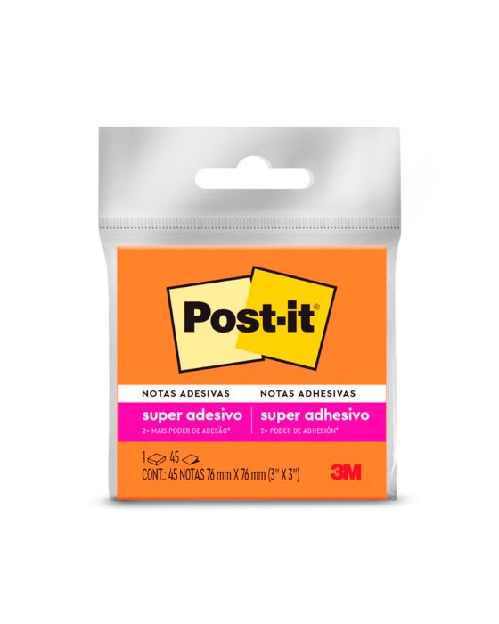 Post-itCaracteristicas:As notas adesivas Post-it® tamanho 7,6 cm x 7,6 cm são ideais para anotações e recados. Suas folhas são reposicionáveis, pois possuem adesivo de qualidade 3M que permite que essas sejam retiradas e recolocadas sem danificar papéis ou outras superfícies. Não deixa resíduos do adesivo, todo papel utilizado nas notas Post-it® é certificado pelo SFI (Chain of Custody Certified), o que garante que vem de florestas bem administradas, onde as árvores são replantadas.Detalhes:- Marca: Post-it®;- Fabricante: 3M;- Referência: HB004399406;- Linha: Blocos de nota;- Cor: Laranja;- Quantidade de folhas: 45 folhas;- Quantidade de blocos: 1 bloco;- Contém: 1 embalagem com 1 bloco de 45 folhas;- Medidas: 76 x 76 mm (7,6 x 7,6cm);- Possui um adesivo 2x mais forte do que o bloco Post-it®original;- Ideal para anotar recados e se organizar;- Gruda e desgruda: É reposicionavel;- Adesivo ideal para o uso em papel;- Reciclável;- Adesivo de base vegetal.Aplicações sugeridas:- Ideal para fazer anotações e lembretes, possui diversas cores o que facilita sua organização. Composição:- Papel (75g/m²) com adesivo com base vegetal reposicionável.AVISO!- O adesivo pode deixar marcas em algumas superfícies ou remover tinta. Teste antes de usar!Conteúdo da embalagem: 1 Post-it Laranja 76 X 76 Mm 45 Folhas 3m.* As especificações podem ser alteradas sem aviso prévio ** Imagem meramente ilustrativa.