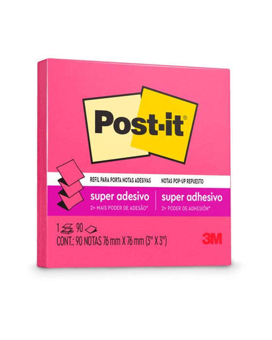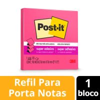 Caracteristicas:O bloco de notas adesivas Post-it® refil 76 mm x 76 mm para o sistema puxa fácil tem o formato parecido com uma sanfona e, quando utilizado junto à linha de suportes sistema puxa fácil para notas, permite que você retire uma nota por vez com apenas uma mão.Suas folhas são reposicionáveis, pois possuem adesivo de qualidade 3M que permite que essas sejam retiradas e recolocadas sem danificar papéis ou outras superfícies. Não deixa resíduos do adesivo.Todo papel utilizado nas notas Post-it® é certificado pelo SFI (Chain of Custody Certified), o que garante que vem de florestas bem administradas, onde as árvores são replantadas.Detalhes:- Marca: Post-it®;- Fabricante: 3M;- Referência: HB004310031;- Linha: Notas adesivas;- Tipo: Refil;- Cor: Rosa;- Quantidade de folhas: 90 folhas;- Quantidade de blocos: 1 bloco;- Contém: 1 embalagem com 1 bloco de 90 folhas;- Medidas: 76 x 76mm (7,6 x 7,6cm);- Contam com 2x maior poder de adesão;- Cola, descola e cola novamente para facilitar sua rotina;- O refil para suportes sistema puxa fácil Post-it® são ótimas para retirada de uma nota por vez com apenas uma mão;- Organização garantida sempre com o bloco refil e suporte de nota Post-it®;- Reciclável.Aplicações sugeridas:- O refil deve ser utilizado junto aos suportes sistema puxa fácil Post-it®, já que possui um formato parecido com safona, facilitando a retirada de uma nota por vez com apenas uma mão. Além disso, os suportes são ótimos para dar a sua cara em casa ou no escritório.Composição:- Papel com adesivo com base vegetal reposicionável.AVISO!- O adesivo pode deixar marcas em algumas superfícies ou remover tinta. Teste antes de usar!Conteúdo da embalagem: 1 Post-it Refil Rosa 76 X 76 Mm 90 Folhas 3m.* As especificações podem ser alteradas sem aviso prévio ** Imagem meramente ilustrativa.