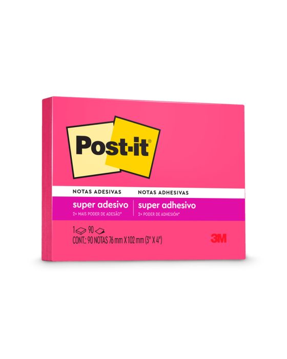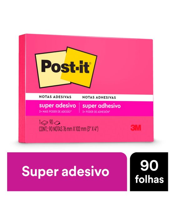 Caracteristicas:Os blocos adesivos são indispensáveis no seu dia-a-dia, garantindo maior organização. Suas folhas são reposicionáveis, pois possuem adesivo de qualidade 3M que permite que essas sejam retiradas e recolocadas sem danificar papéis ou outras superfícies. Não deixa resíduos do adesivo.Todo papel utilizado nas notas Post-it® é certificado pelo SFI (Chain of Custody Certified), o que garante que vem de florestas bem administradas, onde as árvores são replantadas!Detalhes:- Marca: Post-it®;- Fabricante: 3M;- Referência: HB004392161;- Linha: Notas adesivas;- Cor: Rosa;- Quantidade de folhas: 90 folhas;- Quantidade de blocos: 1 bloco;- Contém: 1 embalagem com 1 bloco de 90 folhas;- Medidas: 76 x 102 mm (7,6 x 10,2cm);- Possui um adesivo 2x mais forte do que o bloco Post-it®original;- Ideal para anotar recados e se organizar;- Gruda e desgruda: É reposicionavel;- Adesivo ideal para o uso em papel;- Reciclável;- Adesivo de base vegetal.Aplicações sugeridas:- Ótimos para deixar seus recados e lembretes sempre ao seu alcance.Composição:- Papel com adesivo com base vegetal reposicionável.AVISO!- O adesivo pode deixar marcas em algumas superfícies ou remover tinta. Teste antes de usar!Conteúdo da embalagem: 1 Post-it Rosa 76 X 102 Mm 90 Folhas 3m.* As especificações podem ser alteradas sem aviso prévio ** Imagem meramente ilustrativa.