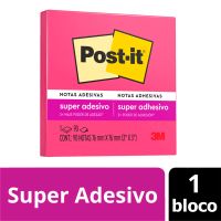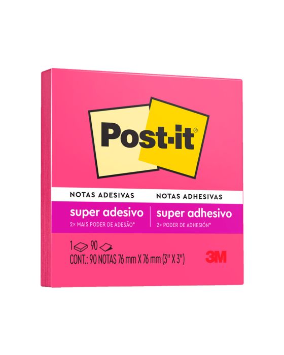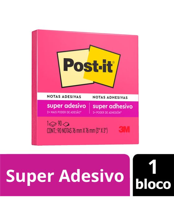 Características:As notas adesivas Post-it® tamanho 7,6 cm x 7,6cm são ideais para anotações e recados. Ideal para fazer anotações e lembretes, possui diversas cores o que facilita sua organização. Possui um adesivo 2x mais forte do que o bloco Post-it® originalDetalhes:- Marca: Post-it®;- Fabricante: 3M;- Modelo: Super Adesivas Post-it®- Referência: HB004309959;- Linha: Blocos de notas;- Cor: Pink Neon;- Quantidade de folhas: 90 folhas;- Quantidade de blocos: 1 bloco;- Contém: 1 embalagem com 1 bloco de 90 folhas cada;- Medidas: 76 x 76mm (7,6 x 7,6cm);- Ideal para anotar recados e se organizar;- Possuindo 2x mais adesão do que o bloco Post-it® original;- Ideal para colar em superfícies verticais;- Não deixa resíduos do adesivo;- Folhas reposicionáveis;- Reciclável;- Produto Certificado: SFI (Chain of Custody Certified) o que garante que vem de florestas bem administradas, onde as árvores são replantadas.Aplicações sugeridas:- Ideal para fazer anotações e lembretes, possui diversas cores o que facilita sua organização. Possui um adesivo 2x mais forte do que o bloco Post-it® original.Composição:- Papel: Papel com gramatura de 90g/m²;- Adesivo: Adesivo de base vegetal.AVISO!- O adesivo pode deixar marcas em algumas superfícies ou remover tinta. Teste antes de usar!* As especificações podem ser alteradas sem aviso prévio ** Imagem meramente ilustrativa.