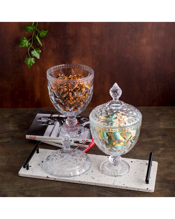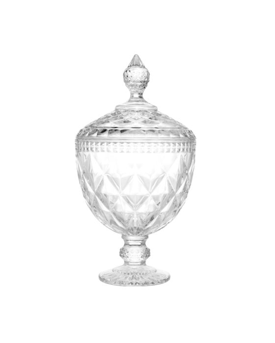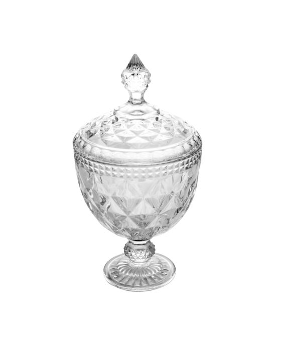 Pote De Vidro Bomboniere C/ Pe Cristal Diamond 15x28cm 7767 Lyor