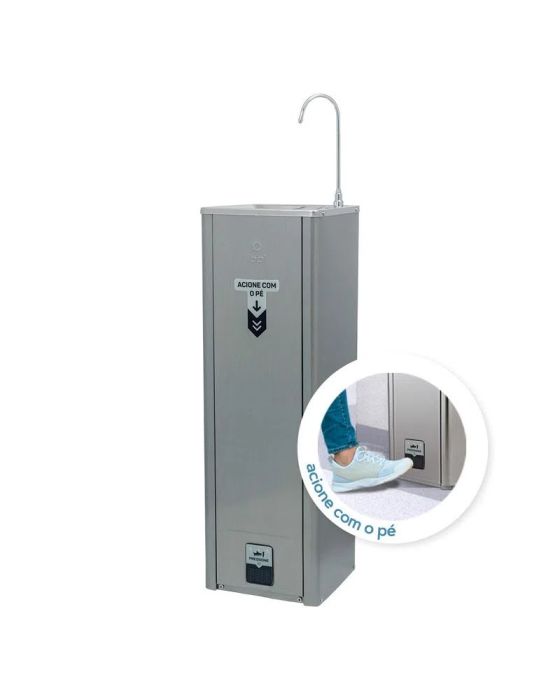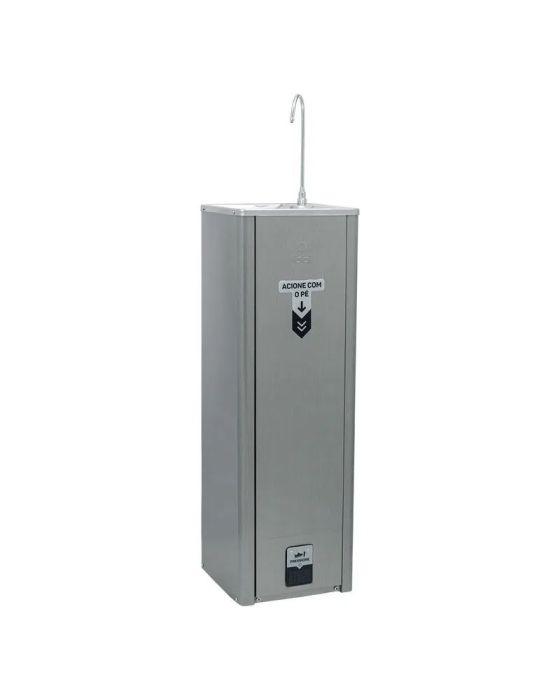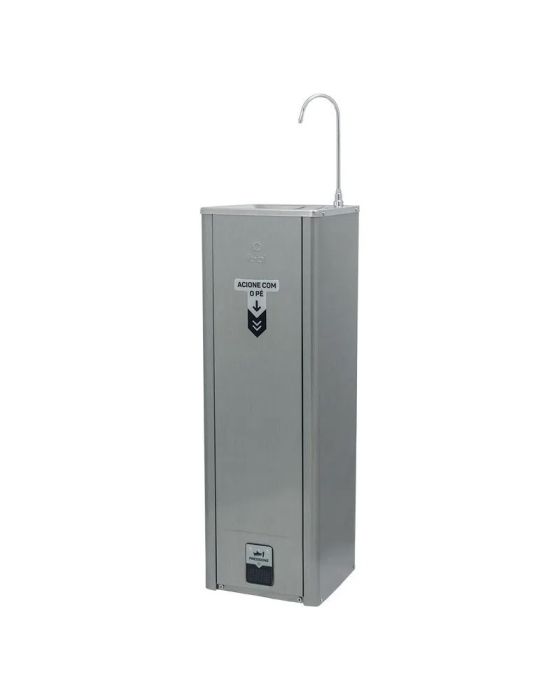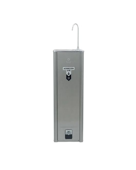 Características:O Purificador Puripress Hands Free oferece água pura e na temperatura ideal para locais onde há grande circulação de pessoas. Ele possui design de coluna e pode ser instalado tanto em áreas internas quanto externas. Com baixo consumo de energia e muita eficiência, tem capacidade para refrigerar 2 litros de água por hora. Para garantir água pura para todos, conta com 3 etapas de purificação e máxima eficiência na redução do cloro. Com acionamento Foot Control, é possível se servir de água sem o contato das mãos, evitando assim a conteminação da superfície.- Foot control: Acionamento sem o contato das mãos- Design Coluna- Refil Girou, Trocou: troque sem fechar o registro (Tipo de Filtro: C+3)- Etapas de Purificação Tripla- Vida Útil do Filtro 3.000 L / até 6 meses- Jato para Copo/boca- Regulagem do jato de água- Easy Clean (desmontável para higienização)**- Serpentina externa (fácil higienização)- Gabinete cor inox- Tampo em aço inox polido- Depósito de água em aço inox 304- Dreno para limpeza- Pés antiderrapantes- Refrigeração: Compressor- Termostato Interno: Sim- Grau de Proteção: IPX4- Ambientes internos e externos- Volume Interno do Aparelho: 1,2L- Recomendado para (pessoas/h): 40- Capacidade de Fornecimento de Água Gelada (L/h)*: 2- Temperatura de Resfriamento*: 10 °C / 50 °F- Vazão Máxima (L/h): 60- Uso Comercial: Sim- Potência: 120W- Voltagem: 110V- Dimensões: (A x L x P) 1.120 x 320 x 320mm- Peso: 14,46- Garantia: 1 ano contra defeitos de fabricação* Conforme norma ABNT NBR 16236/2013* As especificações podem ser alteradas sem aviso prévio ** Imagem meramente ilustrativa