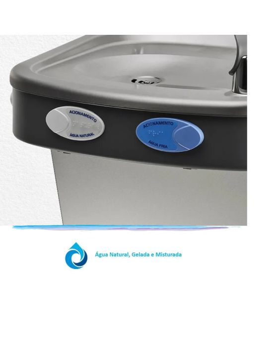 Características:O Purificador de Pressão PDF 100 foi projetado para atender locais com grande fluxo de pessoas e principalmente no atendimento ao desenho universal, sendo acessível à deficientes físicos e pessoas com mobilidade reduzida. Está adequado a norma ABNT-NBR 9050:2015 e o Decreto 5296/2004 e pode ser utilizado em áreas internas e externas.- Design suspenso- Ecocompressor (gás R-134a não agride a camada de ozônio)- Refil Girou, Trocou: troque sem fechar o registro- Teclas em Braille- Água natural, gelada e misturada- Ambientes internos e externos- Atende ao Desenho Universal: para pessoas com mobilidade reduzida, deficientes físicos e visuais.- Jato para boca- Protetor bucal flexível- Regulagem do jato de água- Refil Bacteriostástico: controla a proliferação de bactérias- Elimina odores- Elimina sabores- Retém micropartículas presentes na água- Easy Clean (desmontável para higienização)- Serpentina externa (fácil higienização)- Gabinete em chapa eletrozincada na cor prata- Tampo em aço inox 304 escovado- Depósito de água em aço inox 304- Dreno para limpeza- Ralo sifonado- Fixação na parede- Volume Interno do Aparelho (L): 1,2- Capacidade (pessoas/h): 40- Capacidade de Fornecimento de Água Gelada (L/h): 2,75- Temperatura de Resfriamento: 10°C / 50°F- Vazão Máxima (L/h): 60- Utiliza os filtros linha C+5, Pré C+3 e C+3- Vida Útil do Filtro: 6.000L ou até 6 meses- Voltagem: 220v- Dimensões sem Embalagem: 570 x 460 x 480mm (A x L x P)- Peso: 17,3kg * As especificações podem ser alteradas sem aviso prévio ** Imagem meramente ilustrativa