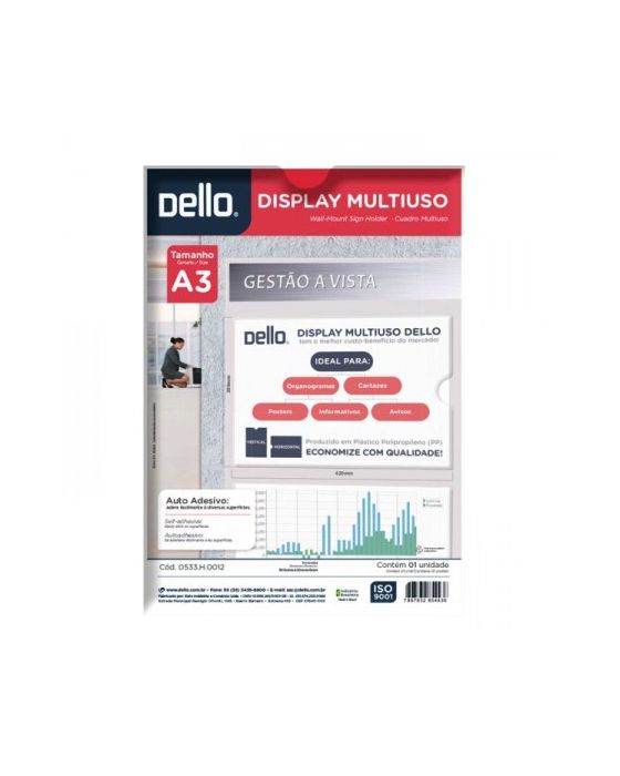 Características:Com o Quadro Multiuso Ofício Cristal Dello você pode deixar todos informados de alguma informação ou recado importante fixando quadro na parede!Detalhes: - Marca: Dello.- Modelo: 0533.H.- Linha: Quadro Multiuso.- Cor: Cristal.- Contém: 1 unidade do produto.- Formato: A3.- Fixação: Auto-adesivo.- Medidas: 42 x 0,5 x 30cm.- Peso: 0,131g.- Espessura: 0,40 Micras.- Posição de aplicação: Vertical ou horizontal.Ideal para: - Fixação em hospitais, elevadores, porta alvarás, condomínios, quadro de avisos entre outros lugares.Composição: - Polipropileno.* As especificações podem ser alteradas sem aviso prévio ** Imagem meramente ilustrativa