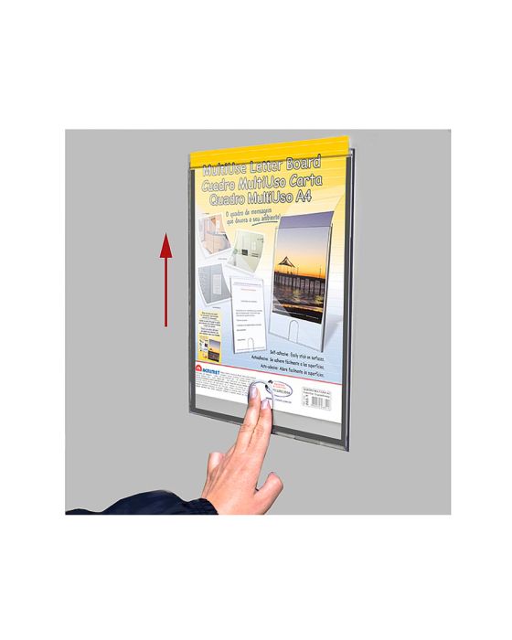 Características:Com o Quadro Multiuso A4 você poderá expor avisos e comunicados importantes, possui montagem rápida e fácil, além de um design moderno e que traz mais agilidade para a troca do papel por outro documento ou foto que queira deixar exposto, seja no modo retrato ou paisagem. Ideal para deixar recados em condomínios, elevadores, recepções, indústrias, academias, refeitórios e demais ambientes corporativos e comerciais que é necessário expor informativos importantes!Detalhes:- Marca: Acrimet;- Referência: 865;- Linha: Quadro Multiuso;- Cor: Cristal com bordas cinzas;- Contém: 1 unidade do produto;- Formato: A4;- Fixação: Fita adesiva removível;- Capacidade: Capacidade de 8 a 10 folhas de sulfite 75g justas ou 5 folhas soltas que não atrapalhem a retirada;- Frente e verso: o papel será colocado entre duas lâminas de poliestireno, sem ficar em contato com a superfície onde será colocado;- Fixação em adesivo dupla face que já acompanha o produto;- Pode ser utilizado sobre mesas e balcões com uso do suporte smart ref. 866.0 (suporte não comercializado pela Contabilista).Indústria Brasileira. | Validade: Indeterminada.Ideal para:- condomínios, elevadores, recepções, indústrias, academias e demais lugares comerciais, podendo ser exposto em escolas, escritórios, elevadores, fábricas, banheiros, corredores, salas de aula, hospitais, lojas, recepções e muitos outros locais.Composição:- Fabricado em poliestireno.Medidas:- Dimensões do produto: 31,6 x 23,2 x 0,06cm (CxLxA);- Peso: 388g.* As especificações podem ser alteradas sem aviso prévio ** Imagem meramente ilustrativa.