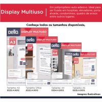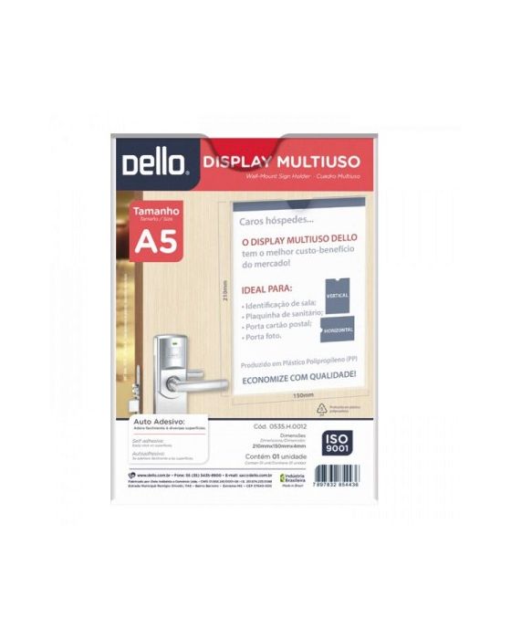 Características:Com o Quadro Multiuso Ofício Cristal Dello você pode deixar todos informados de alguma informação ou recado importante fixando quadro na parede!Detalhes: - Marca: Dello.- Modelo: 0535.H.- Linha: Quadro Multiuso.- Cor: Cristal.- Contém: 1 unidade do produto.- Formato: A5.- Fixação: Auto-adesivo.- Medidas: 15 x 0,5 x 21cm.- Peso: 0,035g.- Espessura: 0,40 Micras.- Posição de aplicação: Vertical ou horizontal.Ideal para: - Fixação em hospitais, elevadores, porta alvarás, condomínios, quadro de avisos, identificação de sala, placa de sanitário, porta cartão postal, porta foto entre outros lugares.Composição: - Polipropileno.* As especificações podem ser alteradas sem aviso prévio ** Imagem meramente ilustrativa