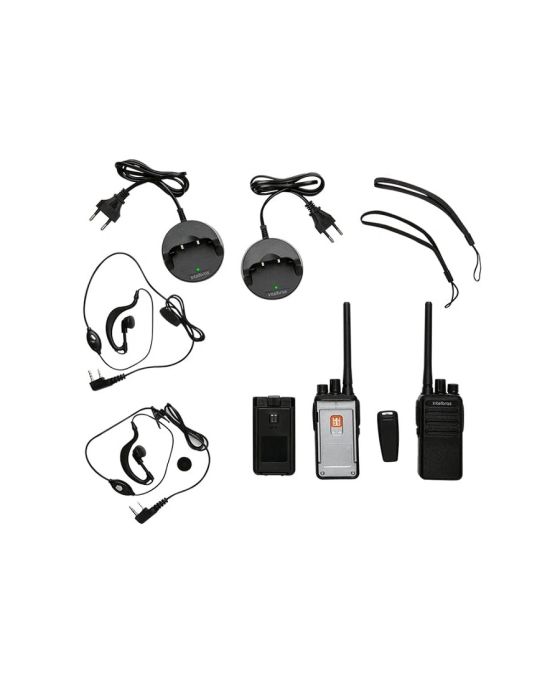 Caracteristicas:Proporciona uma comunicação sem fio de forma rápida, eficaz e sem depender de operadora. Ideal para quem está sempre em movimento e conectado.- Alcance de até 20km- Alcance área aberta: Até 20km- Alcance Mar/Lago: Até 7km- Alcance área urbana: Até 2km- Possui 16 canais de comunicação- Utiliza a banda FRS- Duração da bateria 12 Horas (80% Repouso / 20% Conversando)- Compatível com fones de ouvido (Não incluso)- Compatibilidade com carregadores portáteis USB- Faixa de frequência: 462,56 – 467,58 Mhz - Potência nominal: 500 mW- Tempo de carga: 3,5 horas- Tipo de Bateria: Lítio 1100 mAh- Fonte de alimentação: Ent: 110-220Vac ~ 50/60Hz (automático) Saída: 5Vdc / 0,55A- Dimensões (A x L x P): 21,5 x 3,0 x 5,4cm- Peso do portátil (incluindo bateria): 580g- Garantia: 1 Ano contra defeitos de fabricação- Conteúdo da embalagem: 2x Rádios comunicadores, 2x Bases carregadoras, 2x Baterias de lítio recarregáveis, 2x Fontes AC/DC Bivolt, 2x Prendedores de cinto, 2x Cordão de pulso, 1x Manual do usuário* As especificações podem ser alteradas sem aviso prévio ** Imagem meramente ilustrativa.