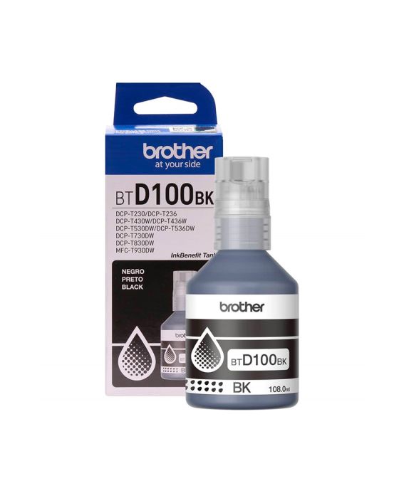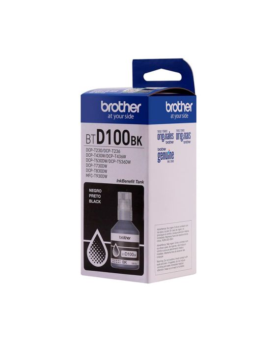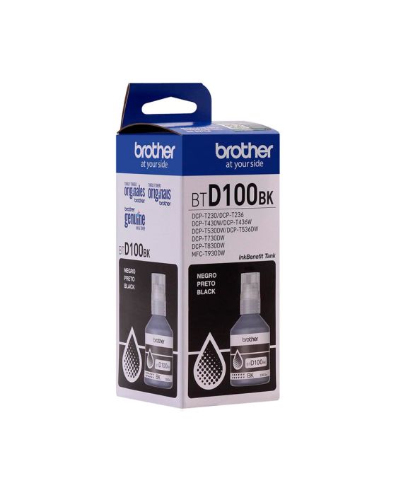 Características:A garrafa de tinta preta de ultra rendimento da Brother para a linha InkBenefit Tank, oferece resultados nítidos e cores vibrantes para impressão de alta qualidade. As novas garrafas de tinta anti-derramamento reabastecem rapidamente o tanque em apenas alguns segundos.Detalhes:- Marca: Brother;- Referência: BTD100BK;- Linha: Cartuchos;- Tipo: Tinta;- Cor: Preto;- Volume cartucho: 108ml;- Contém: 1 unidade do produto;- Tecnologia de impressão: Jato de Tinta;- Rendimento: Aproximadamente 7.500 páginas;- Produto Original.Fabricado no Japão. | Validade: Indeterminada sob uso regular.Impressoras Compatíveis:- Modelos impressoras multifuncionais da linha InkBenefit Tank: DCP-T230/DCP-T236, DCP-T430W/DCP-T436W, DCP-T530DW/DCP-T536DW, DCP-T730DW, DCP-T830DW e MFCT930DW.Recomendações:- Para obter uma melhor qualidade de impressão e manter vida útil do seu equipamento, recomendamos o uso dos suprimentos originais Brother;- Esta garrafa de tinta foi projetada de forma inteligente para trabalhar em perfeita harmonia com a impressora Brother InkBenefit Tank, proporcionando resultados de alta qualidade e desempenho confiável;- Os suprimentos originais da Brother produzem impressões nítidas que podem resistir ao teste de tempo.Medidas:- Dimensões embalagem: 5,5 x 5,3 x 12,3cm (CxLxA).Descarte de Cartuchos e Toners:- Você pode fazer o descarte com ajuda do ReCiclo, um projeto da Contabilista através da Contabilista Responsável, basta enviar os seus resíduos para a nossa Central de Distribuição*, se você é de Curitiba ou de Joinville, pode ir até uma de nossas lojas ou preencher o formulário disponível no site para solicitar retirada de materiais.Acesse o Link para verificar as marcas que reciclamos e nossos endereços: https://www.contabilistaresponsavel.com.br/reciclo.* Enviar conteúdo aos cuidados do Setor de Reciclagem.** Atenção: Cartuchos e Toners compatíveis não entram no descarte do ReCiclo, apenas suprimentos originais de nossos parceiros (confira a lista no link acima).*** Caso a Contabilista receba cartuchos e toners de outras marcas, não poderemos nos responsabilizar pela reciclagem e devolveremos ao remetente.**** Peso máximo para coleta: 10 kg.Conteúdo da embalagem: 1 Cartucho de Tinta Preto Brother.Garantia do fornecedor: 90 dias de garantia limitada.* As especificações podem ser alteradas sem aviso prévio ** Imagem meramente ilustrativas.