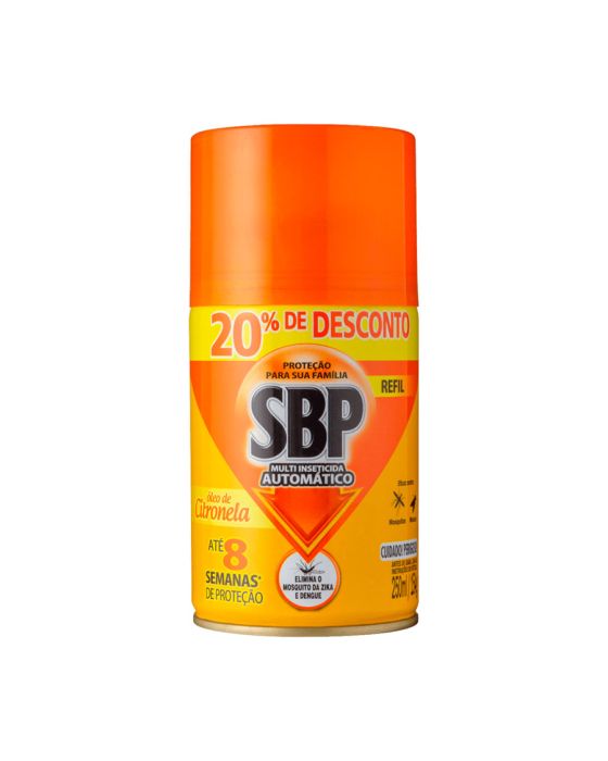 Características:O Multi-Inseticida Automático Óleo de Citronela SBP Frasco 250ml Refil é eficiente para eliminar mosquitos (inclusive o mosquito da Dengue, Zika e Chikungunya), pernilongo, muriçoca, carapaña, mosca, barata, aranha e pulga. Com sua exclusiva fórmula inseticida à base de água, protege sua casa e sua família.Detalhes:- Marca: SBP- Modelo: Refil Multi-Inseticida Automático Óleo de Citronela- Quantidade: 250ml- Peso: 154g- Contém: 1 unidade- Óleo de critronela- Elimina insetos mosquitos e moscas- Porteção por até 8 semanasOnde usar:- Quarto, Salas, Cozinhas, Cozinha.* Evitar o uso em quaros com crianças ou indivídos enfermos.Modo de usar:- Abra o apareho pressionando o botão no topo e puxe a parte de trás, na seta desenhada no topo do aparelho.- Ajuste o botão de regulagem em OFF (último nível inferior).- Retire o vazio e encaixe o novo refil. Composição: - Ingredientes Ativos: Permetrina 0,8% e transflutrina 0,6% - Ingredientes Ativos, Antioxidante, Mascarante, Solvente e Propelentes. Conservação: - Armazenar em local fresco e arejado.* As especificações podem ser alteradas sem aviso prévio ** Imagem meramente ilustrativa