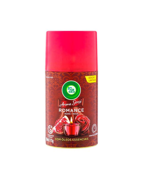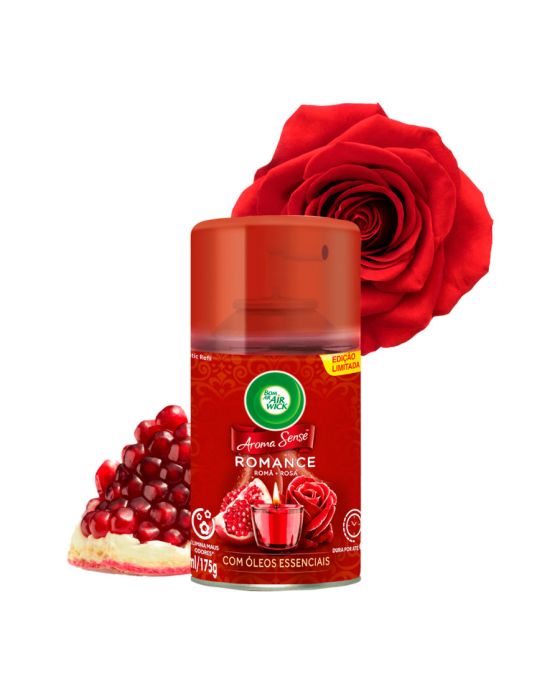 Características - Fragrância: Romance Romã + Rosa com óleos essenciais - Para uso no aparelho Bom Ar® Freshmatic Spray Automático - Contém 1 Refil 250ml O Aparelho pode ser regulado para funcionar a cada 09 / 25 / 36 minutos Podendo durar até 60 dias https://www.youtube.com/watch?time_continue=24&v=5r4Upwdq_xw&feature=emb_logo * Adquira o Aparelho Purificador de Ar, sob Cód de referência 36387 ** As especificações podem ser alteradas sem aviso prévio *** Imagem meramente ilustrativa.