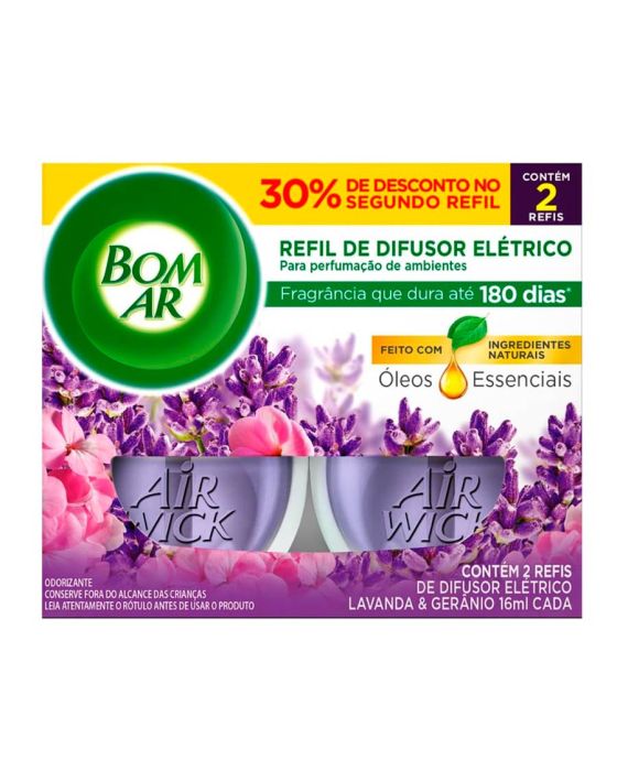 Refil Odorizador Eletrico Lavanda E Geranio 16ml C/2 Bom Ar (embalagem Promocional)