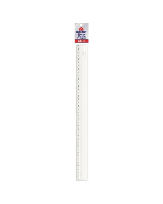 Caracteristicas:- Régua em poliestireno, com escala de 40 cm- Alta precisão da escala- Possui dois micro ressaltos na face que entra em contato com o papel para evitar o desgaste da escala- Cantos arredondados para maior segurança.* As especificações podem ser alteradas sem aviso prévio ** Imagem meramente ilustrativa