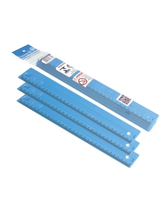Características: As réguas são objetos de medida padrão que tiveram seu primeiro uso registrado pelos egípcios na construção das pirâmides. A Dello deu mais cor a esse instrumento tão importante para a história da humanidade e as chamou de Réguas Pop.Detalhes:- Marca: Dello.- Modelo: 3113 Pop.- Linha: Réguas.- Cores: Azul.- Contém: 1 blister com 10 unidades do produto.- Tamanho: 30cm.- Material: poliestireno.- Espessura da régua: 3 mm.- Dimensões: 31 × 3,4 × 0,3cm (CxLxA).- Linha Econômica.- Possui marcação em cm e mm.- Apoio central para os dedos permitindo mais firmeza de manuseio e precisão no traçado.Produto certificado pelo INMETRO 001540/2013 OCP 0006.* As especificações podem ser alteradas sem aviso prévio ** Imagem meramente ilustrativa.