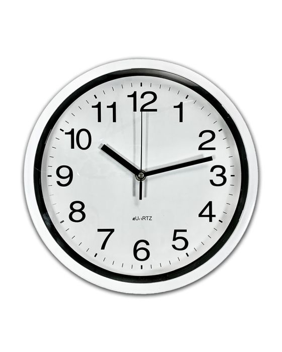 Características:- Diâmetro: 25cm- Cor: Branco- Fundo branco com impressão em preto- Utiliza 1 pilha AA não inclusa * As especificações podem ser alteradas sem aviso prévio ** Imagem meramente ilustrativa.