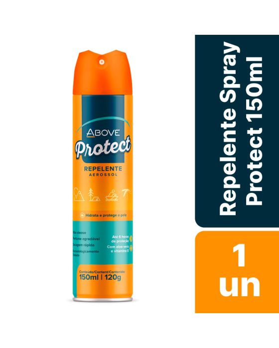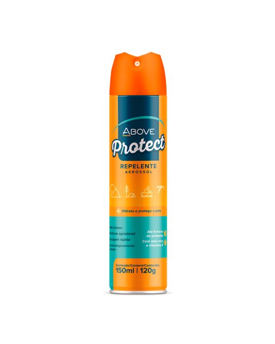 Características:Aproveitar a vida ao ar livre é tudo de bom, mas, para garantir o lazer, é preciso estar protegido. O Repelente de Insetos Above Protect proporciona a tranquilidade essencial para você curtir suas atividades. Com aloe vera e vitamina E em sua fórmula, hidrata e protege a pele por até 6 horas por meio de uma fórmula não oleosa, com secagem rápida e um perfume agradável. Repele moscas e mosquitos, inclusive o Aedes aegypti.Detalhes:- Marca: Above;- Modelo: Protect;- Linha: Repelente de insetos;- Tipo: Aerossol;- Volume/Peso: 150ml/120g;- Contém: 1 unidade do produto;- Proteção de longa duração: 6 horas;- Possui Aloe Vera Vitamina E;- Hidrata e protege a pele;- Não oleoso;- Perfume agradável;- Secagem rápida;- Dermatologicamente testado.Indústria Brasileira.Modo de uso:- Agite bem a embalagem antes de usar, aplique o produto sobre a pele, nas áreas expostas e que deseja proteger, pressionando o aplicador a uma distância de 15cm;- Em seguida é preciso massagear a área até que o produto penetre completamente;- Para uso no rosto, coloque o produto nas mãos e passe evitando o contato direto com os olhos, boca e narinas. Fragrância:- Essência: Ervas Finas;- Notas de Saída: Limão, Gerânio e Alecrim;- Notas de Corpo: Folhas de Menta, Violeta e Tomilho Branco;- Notas de Fundo: Musk e Talcado.Recomendações:- Depois do uso, lavar bem as mãos com água e sabão;- Recomenda-se a reaplicação a cada 7 horas;- Não utilizar mais que 03 vezes ao dia;- Produto contra indicado para pessoas com asma e problmas respiratórios ou hipersensibilidade a componentes da formulação.Conservação:- Não pulverizar perto do fogo;- Não perfurar, nem incinerar a embalagem, mesmo quando vazia;- Não expor aos raios solares nem a temperaturas superiores à 50°c. proteger os olhos durante a aplicação; - Evite a inalação direta do produto. Não aplicar as formulações em ambientes fechados. Não aplicar em crianças menores de 12 anos - Não deixar a embalagem de aerossol dentro e veículo/ risco de vazamento e explosão/ evitar a aplicação do repelente nas mãos, caso ocorra lavar as mãos. Lote, fabricação e validade do produto vide fundo da embalagem.Composição: alcohol, diethyltoluamide*, parfum, butylphenyl methylpropional, linalool, methylal, aloe barbadensis extract, carapa guaianensis seed oil, glycerin, tocopheryl acetate, bht, butane, isobutane, propane.* diethyl toluamide (Concentração = 9,80%).ATENÇÃO! CONSERVAR O PRODUTO FORA DO ALCANCE DE CRIANÇAS E ANIMAIS DOMÉSTICOS.* As especificações podem ser alteradas sem aviso prévio ** Imagem meramente ilustrativa.