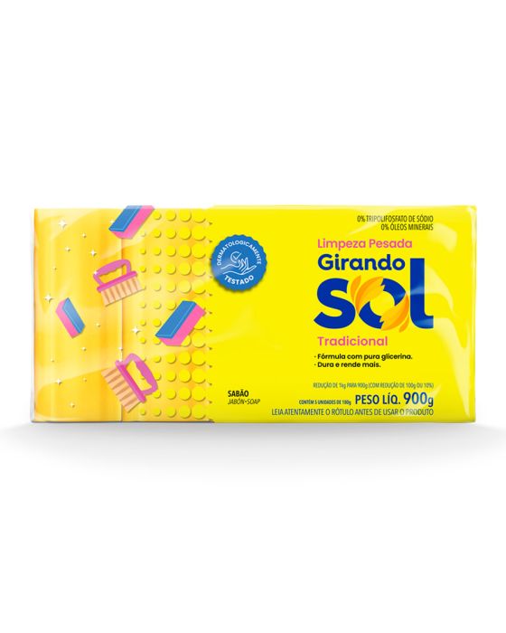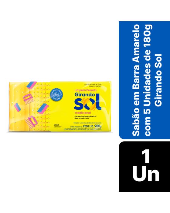 Sabao Em Barra Amarelo C/5un De 180g Girando Sol