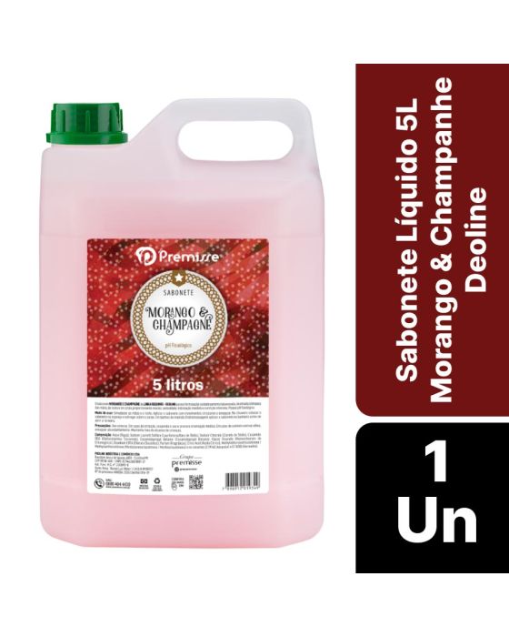 Caracteristicas:O sabonete Morango e Champagne da linha Requinte Deoline possui formulação cuidadosamente balanceada, destinada á limpeza das mãos, do rosto e do corpo, proporcionando maciez, sedosidade, hidratação imediata e nutrição intensiva. Detalhes:- Marca: Deoline.- Modelo: Requinte.- Linha: Sabonete Líquido.- Fragrância: Morango e Champagne.- Quantidade: 5L.- Peso: 5,18 Kg.- pH 100% : 5,0 – 7,0.- Possui pH fisiológico.- Aparência: Líquido rosa claro perolado.- Odor: Perfumado.- Diluição: Pronto para usar. Sem diluir.Modo de usar:- Umedecer as mãos e o rosto.- Aplicar o sabonete com movimentos cuirculares e enxaguar.- No chuveiro colocar o sabonete na esponja e esfregar sobre o corpo.- Em banhos de imersão (hidromassagem) aplicar o sabonete na banheira antes de abrir a torneira.Composição: - Água, Lauriletersulfato de Sódio, Cloreto de Sódio, Dietanolamina Cocamida, Cocamidopropril Betaína, Monoestearato de Etilenoglicol, Edetato Dissódico, Fragrância, Ácido Cítrico, Metilcloroisotiazolinona / Metilsotiazolinona, e os corantes CI 19140 (Amarelo) e CI 16185 (Vermelho)Precauções:- Uso Externo.- Em caso de irritação, suspensa o uso e procure orientação médica.- Em caso de contato com os olhos, enxaguar abundantemente.MANTENHA FORA DO ALCANCE DE CRIANÇAS!* As especificações podem ser alteradas sem aviso prévio ** Imagem meramente ilustrativa.