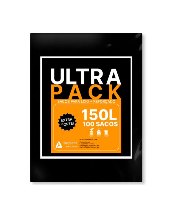 Características:Os Sacos Plásticos de 150 litros na cor preta são ideais para coletas seletivas e acondicionamento de lixo de sua casa e empresa.Os Sacos de Lixo Ultra Pack estão disponíveis também nas opções: 15L, 30L, 50L, 100L, 200L e 300L em nosso site!Detalhes:- Marca: Ultra Pack.- Linha: Saco de lixo.- Tipo: Extraforte.- Cor: Preto.- Litros: 150 Litros.- Capacidade: 20kg.- Contém: 1 embalagem com 100 sacos plásticos.- Micras: 7 Micras.- Classe 1, tipo E.- Resíduo Normal.Indústria Brasileira.Ideal para:- Ideal para Hospitais, Hotéis, Indústrias, Consultórios, Clínicas, Restaurantes, Shopping Centers, Condomínios, Faculdades, Escolas e muito mais.Uso:- Uso exclusivo para acondicionamento/descarte de lixo.Medida:- 88 x 100cm.ATENÇÃO! Cuidado com o uso indevido por crianças, colocando o saco plástico a cabeça poderá asfixiá-la e provocar acidentes!* As especificações podem ser alteradas sem aviso prévio ** Imagem meramente ilustrativa.
