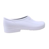 Características:Sapato ocupacional impermeável, projetado para vários ambientes de trabalho e em conformidade com as normas de segurança da ABNT NBR ISO 20344 e 20347.A linha Soft Grip foi desenvolvida para garantir segurança e leveza aos profissionais. Feitos com cabedal de bi-componente em PU e solado de borracha injetada diretamente ao cabedal. O solado de borracha latex é flexível, antiderrapante proporcionando proteção contra derrapagens em todas as direções e facilitando o escoamento da água em pisos molhados.Detalhes:- Marca: Kadesh;- Modelo: Soft Grip;- Referência: 85SGB41;- Linha: Sapatos de proteção individual;- Cor: Branco;- Tamanho: Número 37;- CA: 50.921;- Norma ABNT: NBR ISO 20344 e 20347;- Contém: 1 par de sapatos;- Não possui palmilha e biqueira;- Antiderrapante;Indústria Brasileira.Ideal para:- Indicado para o uso nos segmentos de limpeza, laboratórios, saúde, consultórios, farmacêuticos e hospitalar;Diferenciais:- O solado é injetado diretamente no cabedal em poliuretano expandido, proporcionando conforto e resistência à abrasão. As ranhuras transversais garantem a eliminação instantânea de fluidos, reduzindo o risco de escorregões em superfícies molhadas ou gordurosas;- Cabedal: O produto se adapta perfeitamente ao pé do usuário com a sensação de extensão do próprio corpo, o que garante um excepcional conforto e segurança;- Palmilha Interna: Acompanha palmilha higiênica removível, dublada em tecido para absorção do suor. Reduz o impacto proporcionando conforto aos pés e um caminhar uniforme e suave.Orientações:- Secagem: Armazenar em local seco e ventilado. Secar na sombra. Não secar ao sol ou próximo de fontes com incidência de calor forçado. As condições ideais de armazenamento são a 27°C e 63% de umidade;- Limpeza e higienização: Realizar a limpeza do calçado com um pano umedecido ou utilizando sabão e escova com cerdas macias, externamente e internamente. Não utilizar produtos químicos. As palmilhas podem ser lavadas naturalmente com água e sabão;- Uso: O solado antiderrapante deste produto é feito para enfrentar pisos lisos e escorregadios. Evite utilizar em pisos ásperos como asfaltos, calçadas ou em ambientes onde o sistema antiderrapante não é necessário. Desta forma você estará preservando a qualidade e durabilidade do produto.Recomendação: - Utilizar meias de algodão ao invés de sintéticas, pois absorvem melhor o suor dos pés. A troca das meias deve ser feita todos os dias, não as reutilize antes de lavá-las. Ao final de cada dia retire a palmilha interna para secar o suor absorvido;- Nunca modifique seu calçado, além de alterar as características e automaticamente perder a Certificação de Autorização – C.A. do MTE, pode gerar riscos de acidentes;- O calçado Soft Grip é composto por materiais recicláveis, por isso procure fazer o descarte de maneira correta.Composição:- Solado: borracha 100% natural, com ranhuras transversais que permitem o escoamento de líquidos;- Cabedal: Confeccionado todo com material Elastômero Polimérico Termoplástico Expandido (PU).Medidas:- Dimensões do produto: 32,5 x 18,5 x 11,1cm (CxLxA);- Peso: 450g.Garantia do fornecedor: 90 dias contra defeitos de fabricação.* As especificações podem ser alteradas sem aviso prévio ** Imagem meramente ilustrativa.