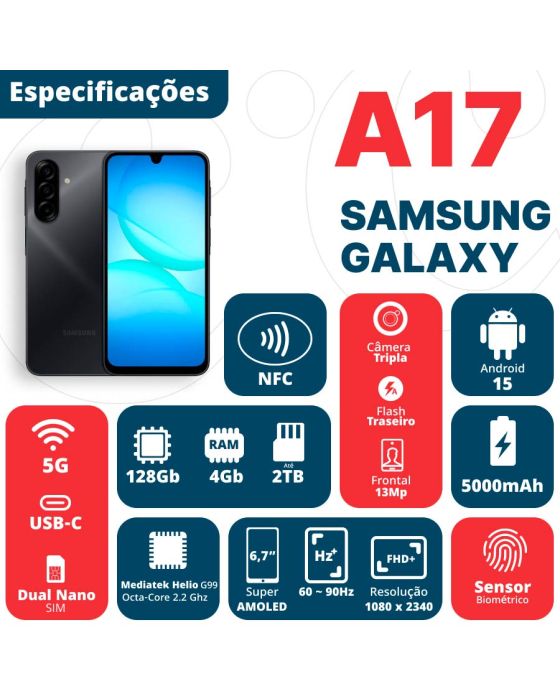 Smartphone Samsung Galaxy A17 4g 128gb 4gb Ram Octa Core Preto