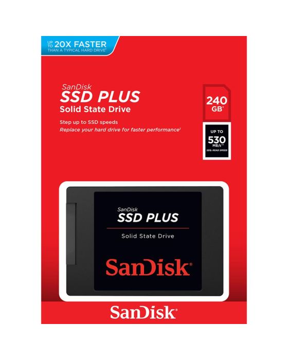 Características:Aumente o desempenho e a vida útil do seu computador!Atualize seu laptop ou desktop com o SanDisk® SSD PLUS e ele parecerá uma nova máquina com inicialização, desligamento e tempo de resposta de aplicativo mais rápidos.Essa unidade de estado sólido rápida e confiável oferece armazenamento em cache SLC para melhorar o desempenho na gravação intermitente, o que a torna a solução de armazenamento ideal para uso típico, como navegação na web, e-mail, jogos casuais e entretenimento de áudio/vídeo.- Capacidade: 240 GB- Velocidade de Leitura: até 530 MB/s- Velocidades de Gravação: até 440 MB/s- Interface: SATA Revision 3.0 (6 Gb/s)- Peso: 50g (com embalagem)- Garantia: 3 anos contra defeitos de fabricação* As especificações podem ser alteradas sem aviso prévio ** Imagem meramente ilustrativa.