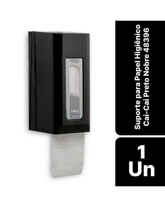 Características:O Suporte para Papel Higiênico Cai Cai Nobre é ideal para banheiros e lavabos, foi desenvolvido especialmente para ambientes de baixa circulação de pessoas e locais que não precisam de muito espaço, pois ocupa uma área mínima na parede.Detalhes:- Marca: Nobre;- Referência: 48396;- Linha: Suporte para Papel Higiênico;- Tipo de papel: Cai Cai;- Cor: Preto;- Contém: 1 unidade do produto;- Otimiza espaço da parede;- Não precisa de um espaço grande na parede;- Disponibiliza ao usuário uma folha por vez, sem a necessidade de corte;- Muito mais economia no uso de papéis higiênicos em banheiros e lavabos.Ideal para:- É indicado para banheiros e lavabos.Modo de uso:- Pressione o botão para abrir; - Abra com cuidado, puxando a parte frontal para a frente e para baixo;- Fixe o dispensador na parede utilizando os parafusos que o acompanham;- Abasteça com papel higiênico cai-cai, feche o dispensador e pronto.Precauções:- Na instalação, é importante verificar a existência de encanamentos no local da parede em que seu dispenser será instalado;- Não utilize água sanitária ou soluções cloradas na higienização do produto;- Para limpeza do dispenser, utilize pano úmido e detergente neutro;- Não utilizar materiais abrasivos.Composição:- Fabricado em Polipropileno (PP).Medidas:- Dimensões do produto: 25,3 x 12,1 x 11,7cm (AxLxP);- Peso: 312g.Conteúdo da embalagem: 1 suporte, 3 parafusos e 3 buchas.* As especificações podem ser alteradas sem aviso prévio ** Imagem meramente ilustrativa.