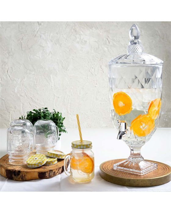 Características:Apresentamos a Suqueira de Cristal Ecológico Diamond da Lyor, uma peça deslumbrante que combina elegância com consciência ambiental. Com um design sofisticado e uma capacidade generosa de 5 litros, esta suqueira é perfeita para servir suas bebidas favoritas de maneira charmosa e sustentável.Design Exclusivo DiamondCom um design elegante e moderno, a suqueira Diamond é uma peça de destaque, complementando a decoração da sua mesa.Torneira Prática para ServirEquipada com uma torneira prática, a suqueira permite servir as bebidas de forma fácil e sem derrames, proporcionando uma experiência de consumo conveniente.Base ResistenteA base resistente da suqueira proporciona estabilidade, evitando acidentes e garantindo que a suqueira permaneça firme durante o serviço.Detalhes:- Marca: Lyor;- Modelo: Diamond;- Referência: 6775;- Linha: Suqueiras;- Cor: Cristal;- Capacidade: 5 Litros;- Contém: 1 unidade do produto;- Torneira prática;- Design exclusivo;- Base resistente.Ideal para:- Ideal para salas de reunião, espaço para café, refeitórios, lanchonetes, restaurantes, panificadora e confeitaria, hotéis e demais estabelecimentos.Limpeza e cuidados:- Lavar com detergente neutro, esponja macia e secar imediatamente; - Não lavar em máquinas e não utilizar produtos químico.Recomendações:- Este produto não pode ir ao Micro-Ondas e Lava Louças, fornos, freezer e fogões.Composição: - Fabricado em Vidro.Medidas:- Dimensões do produto: 24 x 19,5 x 51,5cm (CxLxA);- Dimensões da embalagem: 23,3 x 23 x 44,6cm (CxLxA);- Peso: 4,65kg.Conteúdo da embalagem: 1 Suqueira de Cristal Ecológico Diamond 5L Lyor.As especificações podem ser alteradas sem aviso prévio ** Imagem meramente ilustrativa.