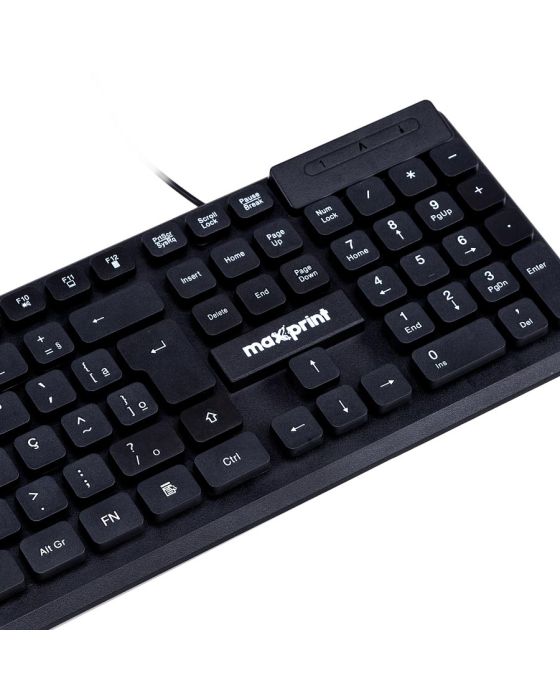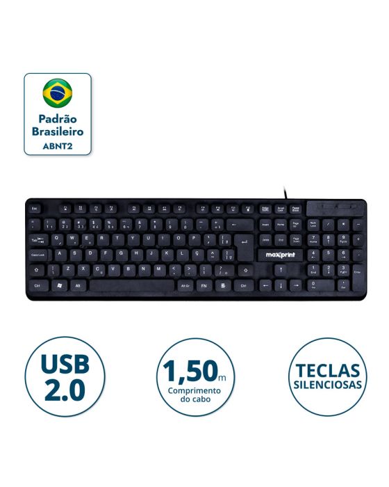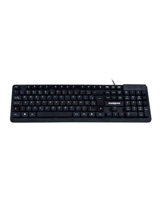 Características:Melhore sua produtividade com o Teclado TE2001!Se você procura um teclado que combine design moderno, praticidade e durabilidade, o Teclado com Teclas Flutuantes TE2001 é a escolha certa! Com conexão USB 2.0 e cabo de 1,5m, ele é perfeito para o dia a dia no escritório ou em casa.Seu layout ABNT2 facilita a digitação em português, enquanto as teclas silenciosas e flutuantes garantem conforto e suavidade em cada toque. Além disso, ele oferece resistência a respingos, proporcionando tranquilidade mesmo em ambientes movimentados.Aproveite ainda as funções multimídia ativadas pela tecla FN para um controle prático e rápido, sem comprometer o fluxo do seu trabalho. Tudo isso com um design ergonômico, ajuste de altura e base antideslizante que trazem conforto e estabilidade.Detalhes:- Marca: Maxprint;- Modelo: TE2001;- Referência: 60000155;- Linha: Teclados;- Tipo: Com fio;- Cor: Preto;- Teclas: Teclas flutuantes;- Quantidade de teclas: 107 teclas;- Padrão: ABNT 2;- Contém: 1 unidade do produto;- Comprimento do cabo: 1,50m;- Conexão: Via USB 2.0 (Plug and play);- Teclas silenciosas;- Função multimídia por função FN;- Tipo Membrana com teclas baixas;- Pés anti-deslizantes e ajuste de altura.Fabricado na China. | Validade: Indeterminado.Diferenciais:- Teclas Flutuantes e Silenciosas: Conforto na digitação com resposta suave e design moderno;- Cabo de 1,5m: Oferece liberdade de movimento e organização na sua mesa;- Resistente a Respingos: Segurança extra contra acidentes do dia a dia;- Ajuste de Altura e Base Antideslizante: Estabilidade e ergonomia para longas horas de uso;- Funções Multimídia (FN): Praticidade no controle de mídia sem sair do teclado.Compatibilidade:- Compatível com Windows, IOS, Linux e MAC.Medidas:- Dimensões do produto: 43,5 x 13 x 2cm (CxLxA);- Dimensões da embalagem: 46 x 15 x 2,5cm (CxLxA);- Peso:Conteúdo da embalagem: 1 Teclado com Fio USB com Teclas Flutuantes TE2001 Maxprint.Garantia do fornecedor: 1 ano contra defeitos de fabricação.* As especificações podem ser alteradas sem aviso prévio ** Imagem meramente ilustrativa.