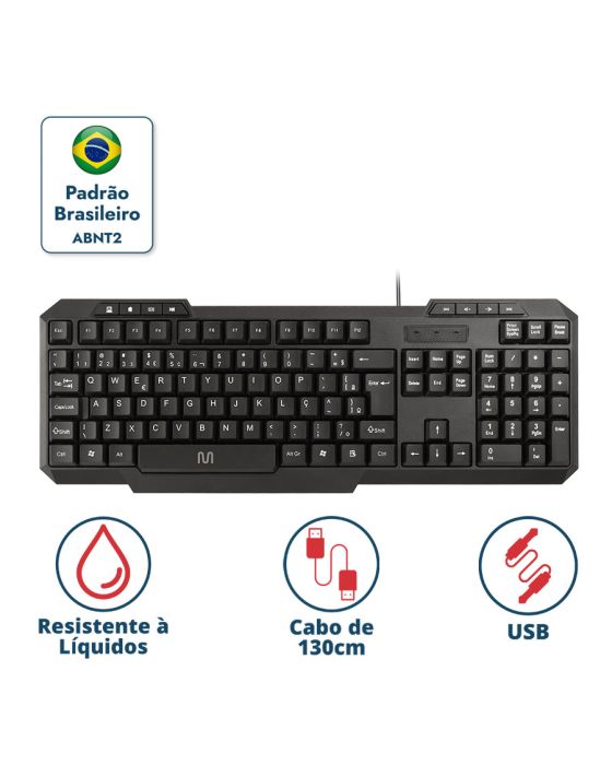 Caracteristicas:Super resistenteRobusto, confortável e fácil de usar, ideal para o seu dia a dia!- Teclado com 115 teclas- 8 funções multimídia- Compatibilidade: Windows - Conexão: USB 2.0- Instalação Plug&Play: Conecte e Use- Teclas macias, silenciosas e confortáveis- Peso: 384g - Dimensões: 443 x 160 x 22mm* As especificações podem ser alteradas sem aviso prévio ** Imagem meramente ilustrativa.