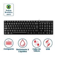 Caracteristicas:- Teclas slim- 105 teclas- Compatível com windows 7/98/ 2000/ XP/ VISTA/ ME- USB- Suporta mais de 10.000.000 de digitação- Cor: PretoInformações Técnicas- Dimensões: 2,27 x 15,3 x 39,2 cm- Peso: 0,469 kg* As especificações podem ser alteradas sem aviso prévio ** Imagem meramente ilustrativa.