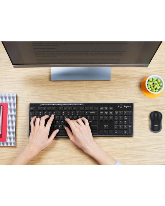Características:Conheça o Kit Teclado e Mouse Wireless MK270 Logitech. Com a tecnologia Sem Fio Logitech Advanced 2.4 GHz ele oferece a você uma conexão confiável e rápida a uma distância de até dez metros*. É a combinação perfeita para seu dia a dia.- Conexão Mouse e Teclado: Sem fio 2,4 GHz (Nano Plug-And-Forget)- Mouse Sem Fio Óptico confortável e arredondado- Teclas de perfil baixo- Teclas Multimídia- Teclado Sem Fio de perfil fino- Teclas Duráveis: Resistem a até 5 milhões de pressionamentos- Suportes inclináveis, fortes e ajustáveis- Conexão USB plug-and-play- Caracteres nítidos e brilhantes- Não requer instalação de software- Distância de funcionamento sem fio: Aprox. 10 metros*- Até 2 anos de vida útil das pilhas*- Alimentação: 2 Pilhas AAA(Teclado) e 2 Pilhas AA(Mouse)- Incluso- Cor: Preto- Peso: 856g- Dimensões da Embalagem: 4,7cm x 15,5cm x 52,3cm (AxLxP)- Requisitos do Sistema: Windows® XP, Windows Vista®, Windows 7, Windows 8, Windows 10- Garantia: 3 Anos de Garantia contra defeitos de fabricação através do Suporte Técnico Logitech(11) 3230-3580- Conteúdo da Embalagem: Teclado,Mouse, 2 Pilhas alcalinas AAA, 2 alcalinas Pilhas AA , Manual do usuário e (Nano Receptor fica dentro da caixa ou dentro do Mouse)* O alcance sem fio pode variar, dependendo do ambiente e das condições de computação. * O Cálculo de duração das pilhas é baseado em uma estimativa de dois milhões de pressionamentos de teclas por ano em um ambiente de escritório, a experiência do usuária varia.* As especificações podem ser alteradas sem aviso prévio ** Imagem meramente ilustrativa