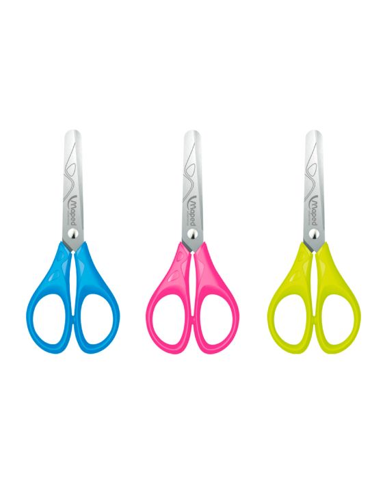 Características:As Tesouras Escolares Maped Essentials são ergonômicas ideais para crianças. Elas apresentam lâminas de aço inoxidável e pontas arredondadas para segurança!Detalhes:- Marca: Maped;- Modelo: Essentials Pulse;- Referência: 464210;- Linha: Tesouras;- Cores: azul, rosa e verde (Cores sortidas);- Contém: 1 blister com 1 unidade do produto;- Alças ergonômicas;- Lâminas decoradas;- Lâminas com pontas arredondadas.Recomendação:- Recomendado para crianças à partir de 4 anos de idade.Composição:- Fabricado em plástico e aço inoxidável.Medidas:- Dimensões da embalagem: 16,9 x 7,5 x 1cm (CxLxA);- Dimensões do produto: 13 x 5,4 x 0,6 (CxLxA).Cores sortidas, será enviado de acordo com a disponibilidade do estoque. Não é possível escolher uma cor específica.* As especificações podem ser alteradas sem aviso prévio ** Imagem meramente ilustrativa.