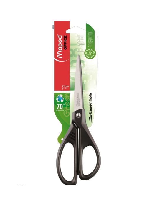 Caracteristicas:-Tesoura Essentials Green – 21 cm-Tesoura Multiuso com anéis ergonômicos, feitos em plástico 70% reciclado.-Lâminas e rebite em aço inoxidável.-2 anos de garantia contra defeitos de fabricação. * As especificações podem ser alteradas sem aviso prévio ** Imagem meramente ilustrativa.