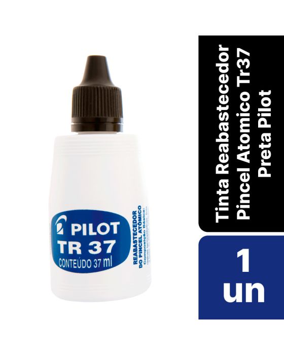 Características:A Tinta para Pincel Atômico PILOT TR 37 é a escolha perfeita para recarregar e prolongar a vida útil dos marcadores permanentes PILOT Pincel Atômico 1100-P e 1100-M. Desenvolvida com uma fórmula à base de álcool, essa tinta oferece cores vivas, secagem rápida e mantém as propriedades originais do marcador, proporcionando uma escrita suave e consistente.Ao escolher a Tinta TR 37, você evita o descarte do seu marcador usado, contribuindo para reduzir a geração de resíduos. Abasteça o seu marcador de acordo com as instruções gravadas nele e aproveite uma escrita revitalizada em todas as suas marcações.Detalhes:- Marca: Pilot;- Modelo: TR37;- Referência: 1060001;- Linha: Tintas para Pincel Atômico;- Volume: 37ml;- Cor: Preta;- Contém: 1 unidade do produto;- Para reabastecer pincel atômico;- Tinta permanente a base de àgua.Armazenagem:- Armazenar em local ventilado, fresco, seco e cobertos;- Mantenha a embalagem fechada longe de fontes de calor, ignição, crianças e alimentos;- Incompatível com agentes oxidantes da subclasse 5.1;- Não armazenar o produto com materiais explosivos, gases inflamáveis e/ou tóxicos, substâncias oxidantes, corrosivas, peróxidos orgânicos, materiais de combustão espontânea e materiais radioativos.Composição:- Tinta base de álcool etílico, corantes, aditivos e resinas (Preparado).ATENÇÃO! MANTENHA FORA DO ALCANCE DAS CRIANÇAS E DOS ANIMAIS DOMÉSTICOS.* As especificações podem ser alteradas sem aviso prévio ** Imagem meramente ilustrativa.