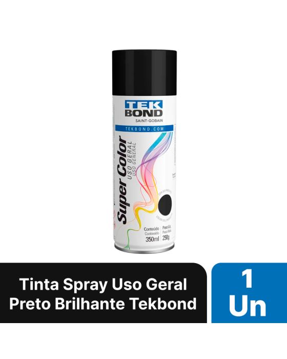Tinta Spray Uso Geral Preto Brilhante 350ml/250g Tekbond